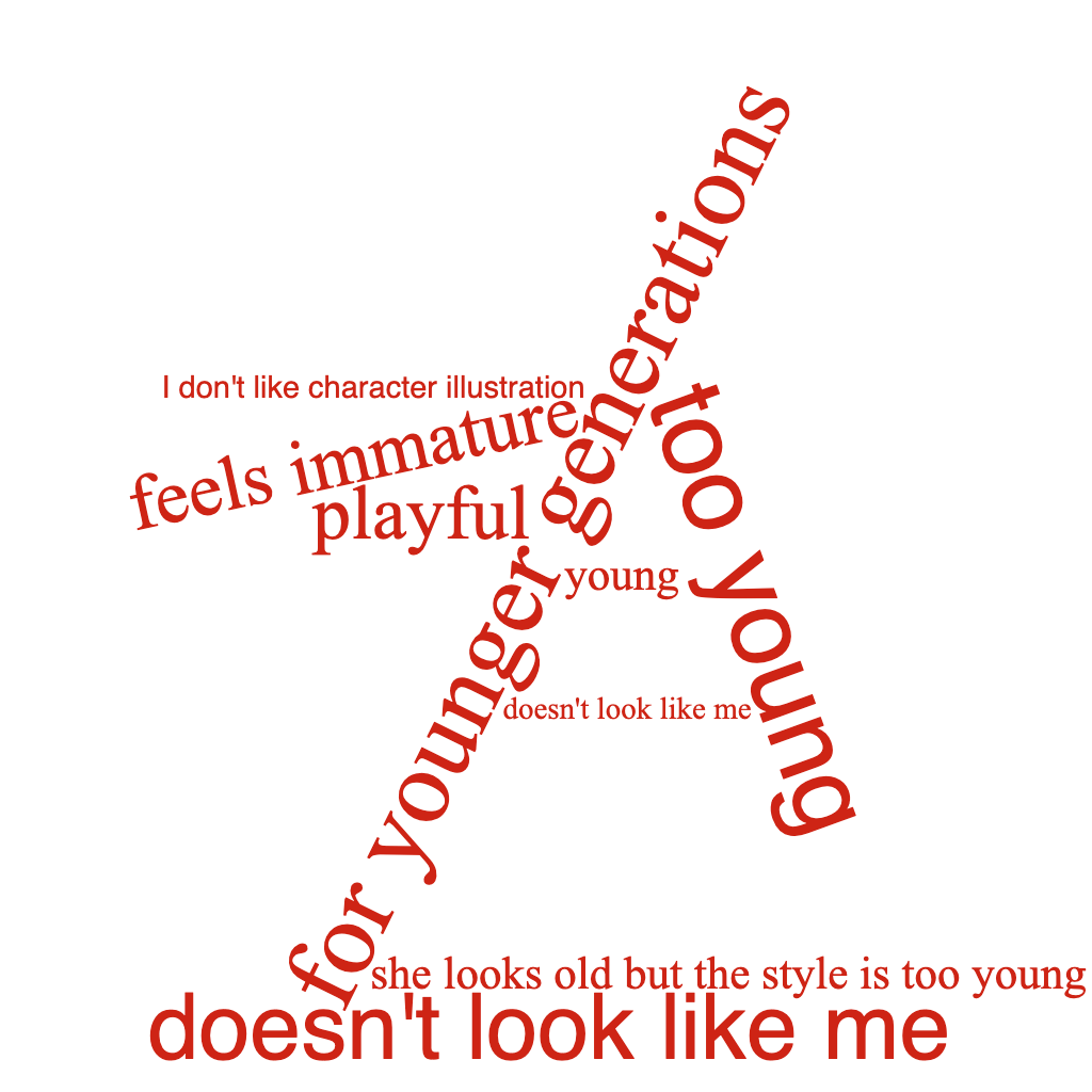 Character based illustration: strong in playfulness, less mature, more accessible as it focuses on character experiences