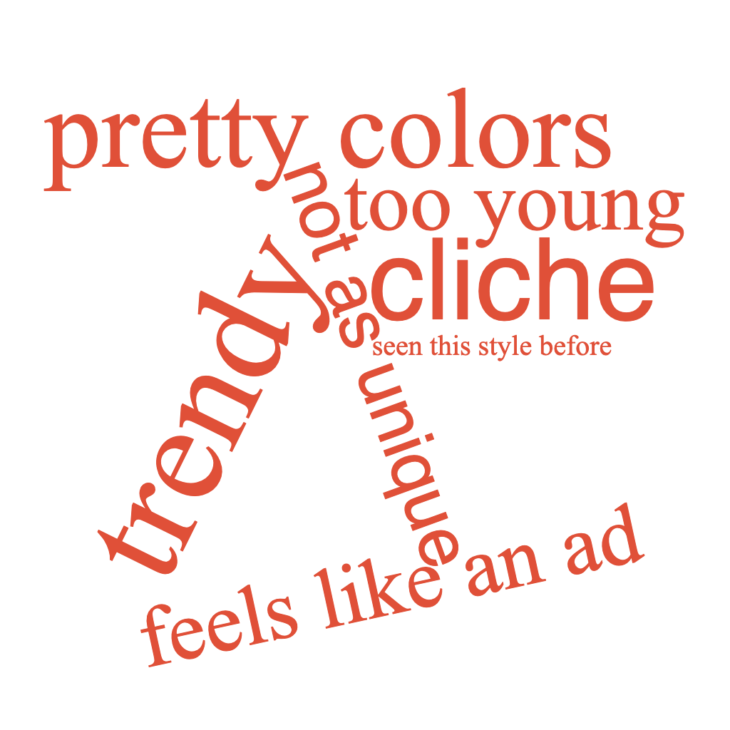 Qualitative feedback word cloud of visual impressions