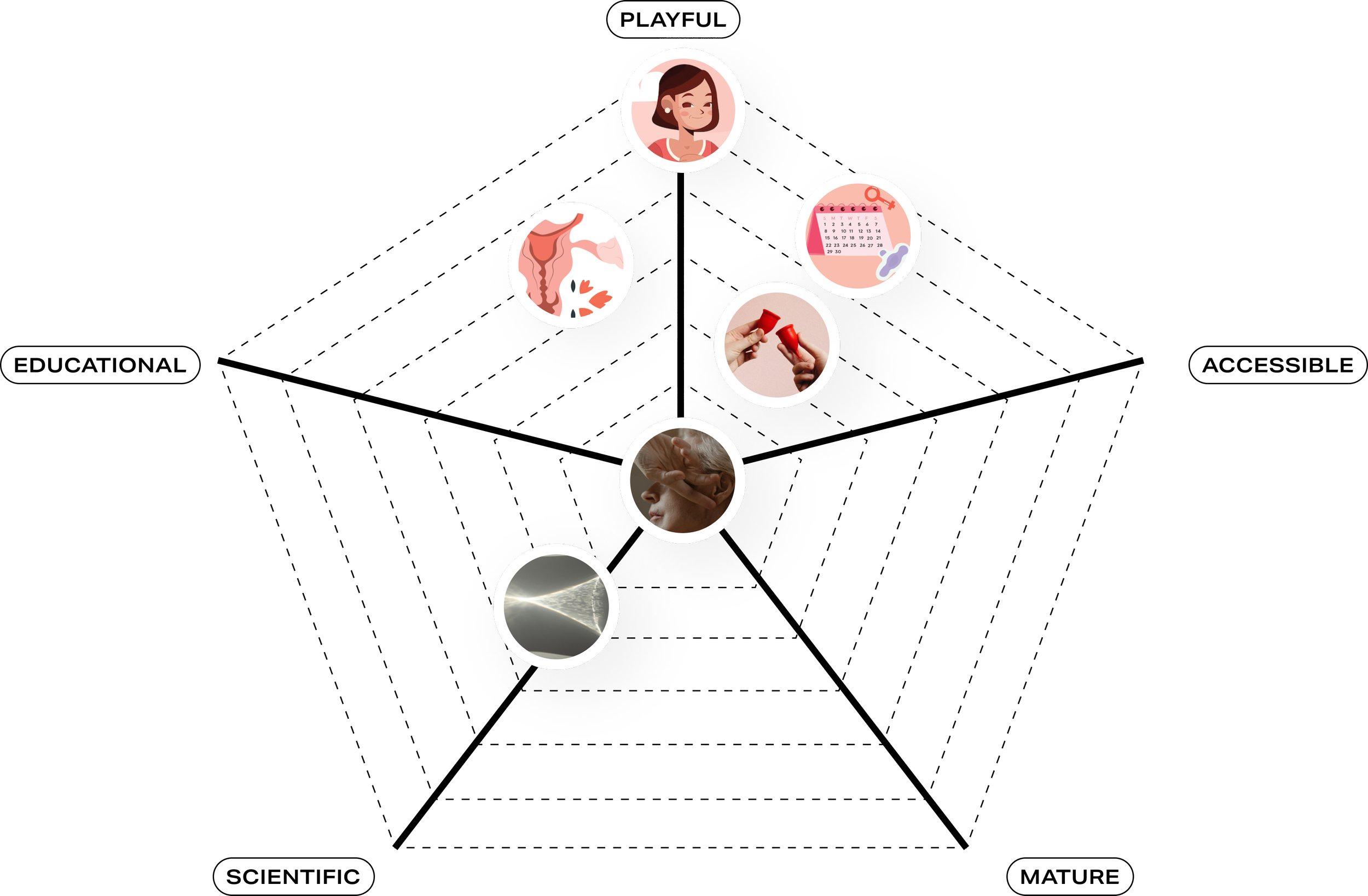 After assessing the quantitative and qualitative consumer feedback, as a team we were able to map the art directions back to our spider web map of pillars the brand wanted to position themselves as. Our goal as we set out was to achieve a balance between the 5 pillars, Playful, Accessible, Educational, Scientific, and Mature, in order to harmoniously arrive at empowerment.